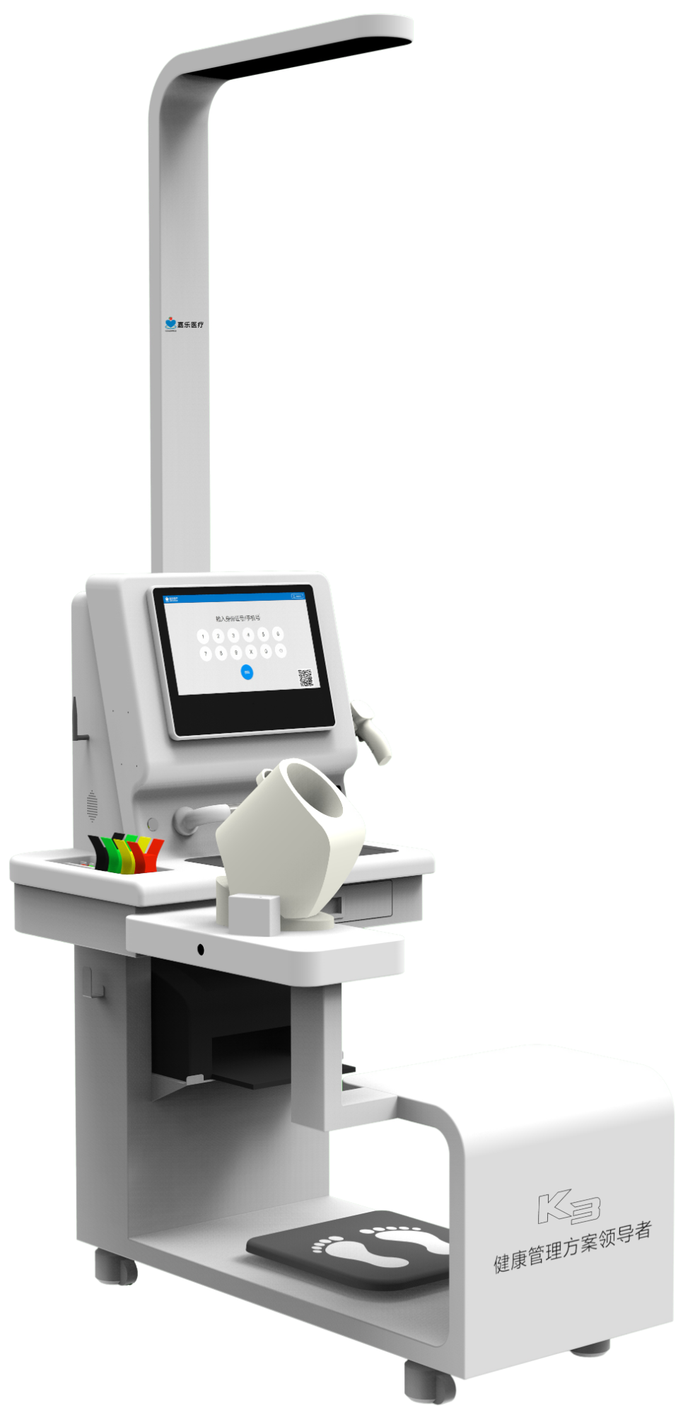 檢測功能:身高、體重、BMI、體溫、人體脂肪成分(脂肪含量、基礎代謝、水分含量、體脂肪量、體水分量、體型判斷等)、血壓、脈率、血氧、心電(6-12導)、腰圍、臀圍、腰臀比、血糖、尿酸、膽固醇、、中醫體質辨識檢測。支持拓展:血脂四項、骨密度、尿液分析、肺功能、心血管、中醫體質辨識…產品特點:一體化設計、安裝維護理簡單,安裝移動輪,移動方便;多種身份識別:二代身份證(IC卡)、手機、微信掃碼、指紋、人